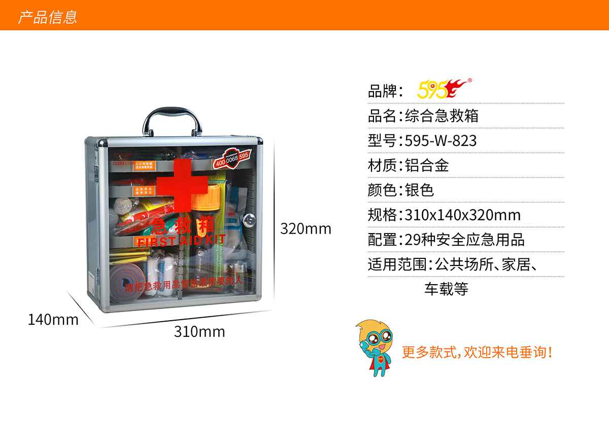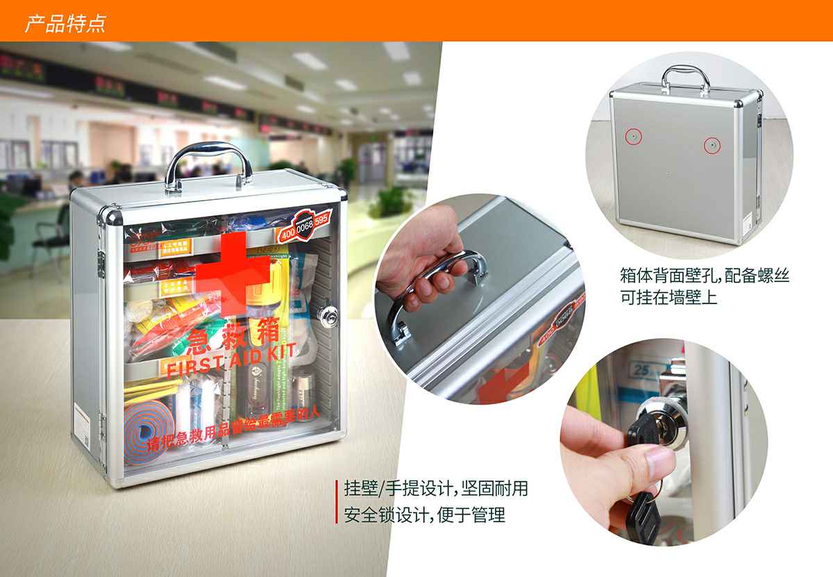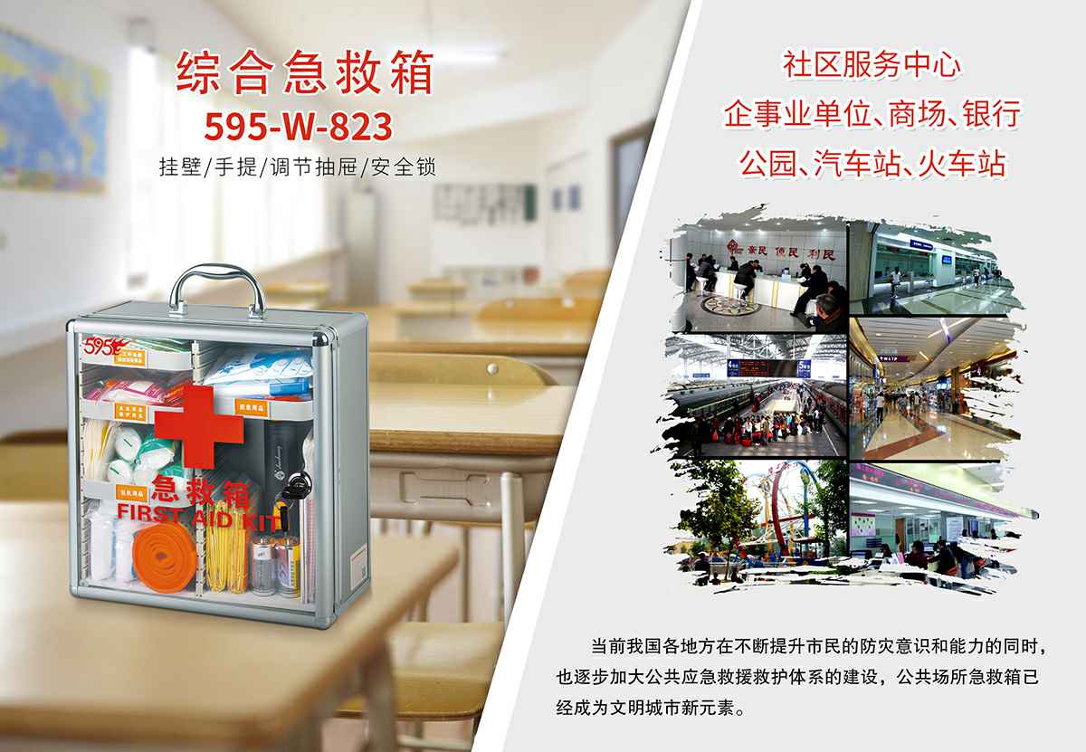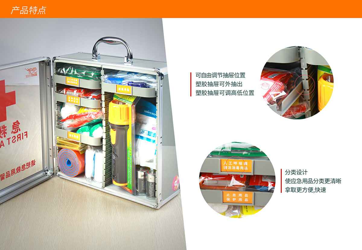 金沙澳门(中国)唯一官方网站综合急救箱,独特的箱体设计,适用于劳保、厂矿、公共场所、办公室、车间、学校、社区、健身房、实验室、建筑工地等人员密集的场所及防灾减灾等领域。